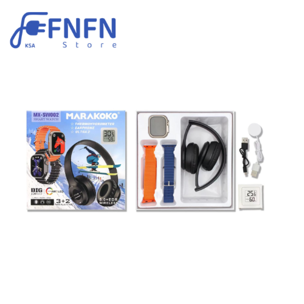 استمتع بالتكنولوجيا المتقدمة والتصميم العصري مع بكج ساعة وسماعة ماراكوكو ، الحل المثالي للأناقة والابتكار، يجمع هذا البكج بين الساعة الذكية والسماعة اللاسلكية المتوافقة مع كافة الأجهزة.