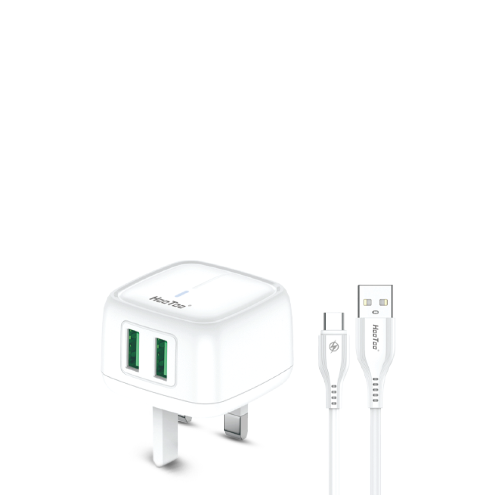 شاحن منزلي من هوتو منفذين يو اس بي مع كيبل تايب سي يدعم الشحن السريع